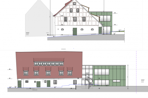 Darüber hinaus bearbeiten wir Öffentliche Bauten wie die Grund- und Hauptschule Abenberg aber auch individuelle Bauten für die Industrie.