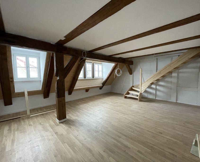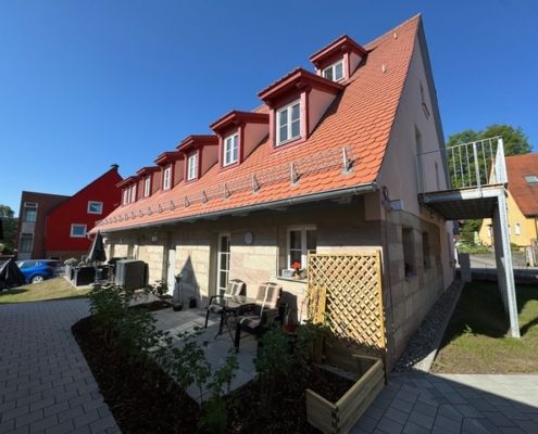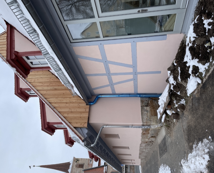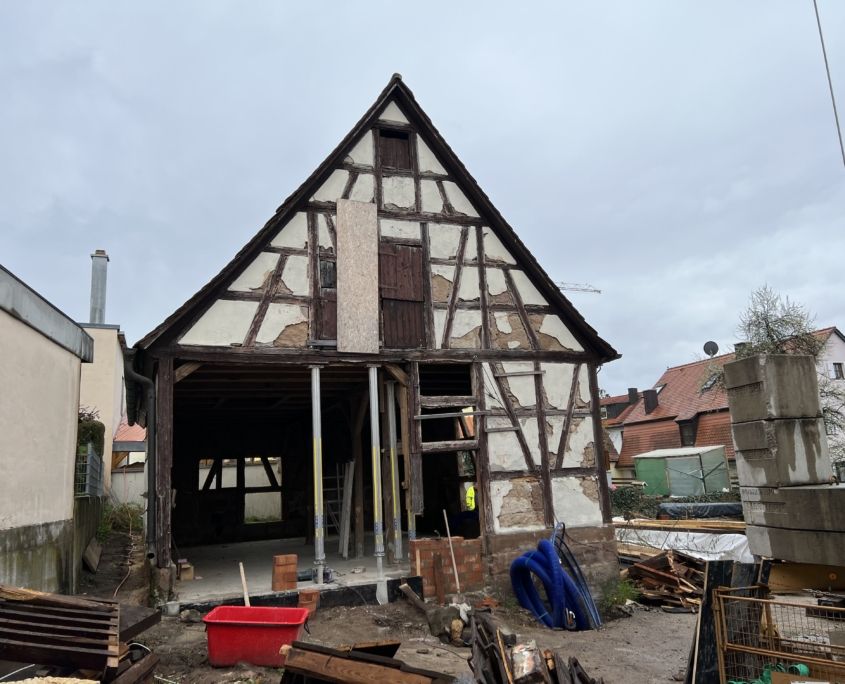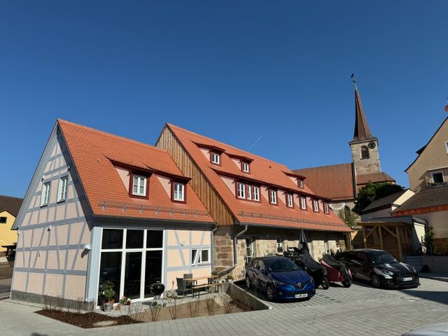 Sanierung eines ehemaligen Land wirtschaftlichen Wohnstall Hauses mit Scheunen, im Kern 1555 Errichtet. Nutzungsänderung mit sechs Wohnungen. Energetische Ertüchtigung als KfW-Effizienzhaus Denkmal. Zentrale Heizungsanlage mit Wärmepumpen. Heizungssystem mit Fußbodenheizung.
