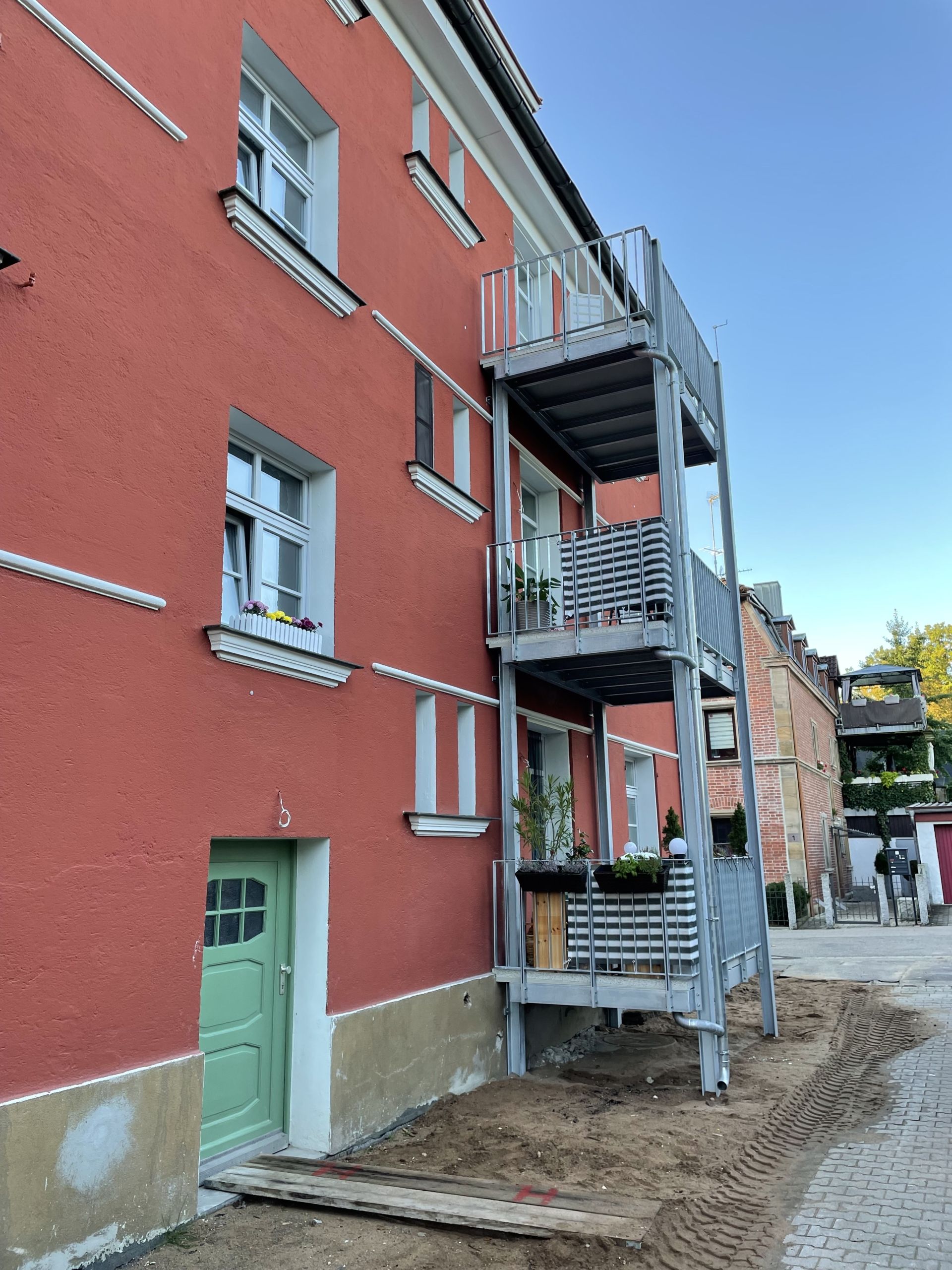 Bauliche Maßnahmen: Die Fassade blieb in ihrer Ausgestaltung erhalten und erfuhr eine Sanierung. Im Zuge der Fassadensanierung wurden die Außenzugänge der ehemaligen Waschküchen abgebrochen und dort wurde jeweils ein dreigeschossiger Balkon errichtet. Die kompletten Fenster im Haus wurden abgebrochen und durch neue Holzfenster ersetzt. Die bestehenden Holztreppen und Holzinnentüren sind erhalten geblieben und haben eine Restaurierung erfahren. Die Bodenbeläge in den Treppenhäusern sind erhalten geblieben. Die komplette Installation (Wasser, Abwasser, Elektro und Heizung) wurde abgebrochen und neu installiert In den Wohnungen, in denen noch eine räumliche Teilung zwischen Bad, WC und Speisekammer vorhanden war, wurden die Trennwände abgebrochen und ein großes Badezimmer eingerichtet. Alle Bäder wurden abgebrochen und neu installiert. Die Dachgeschoßräume wurden zu 3 Dachgeschoßwohnungen ausgebaut werden.