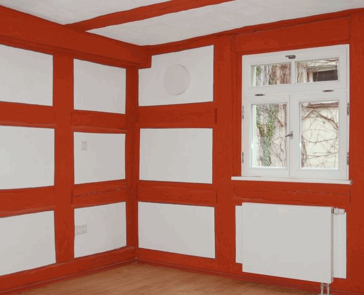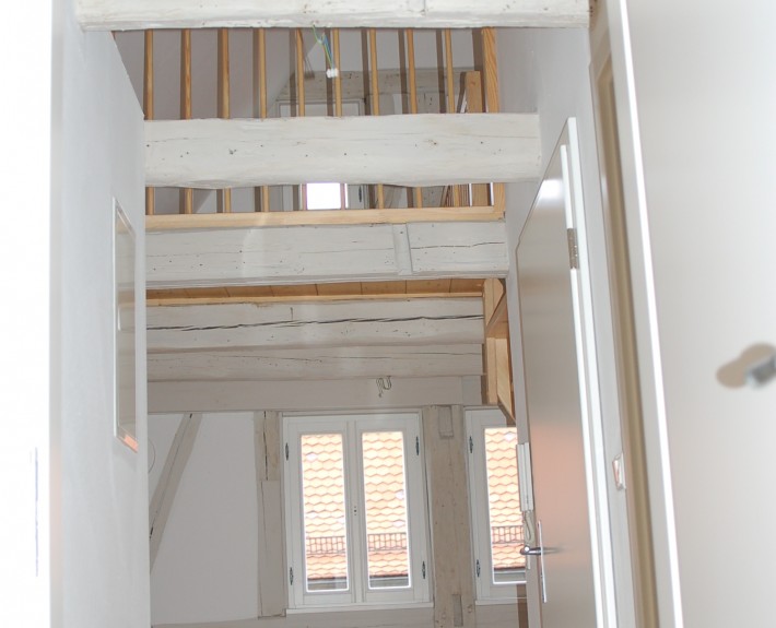 Das historische Wandgefüge wurde erhalten. Ergänzende Wände für Bäder wurden als Trockenbauwände ausgeführt. Die spätgotische Holzkonstruktion wurde zimmermannsmäßig saniert. Vorhandene Lehmgefache und Lehmwickel wurden ergänzt.