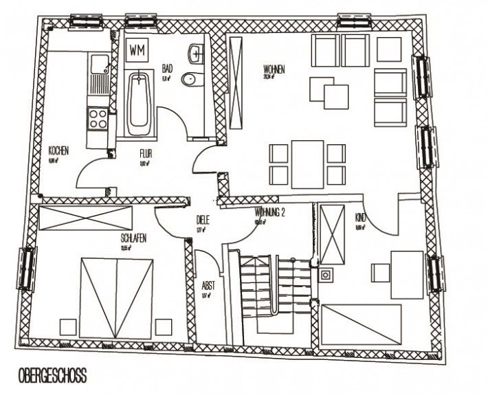 Im Gebäude sind drei Wohnungen, zwei Zweizimmerwohnungen und eine Dreizimmerwohnung untergebracht. Die Haustechnik befindet sich in einem Nebenraum im Erdgeschoss. Müllräume und Abstellräume finden ihren Platz in einem Anbau im Hofbereich. Bei der Gestaltung der Grundrisse wurde die Nutzung auf das historische Wandgefüge abgestimmt.