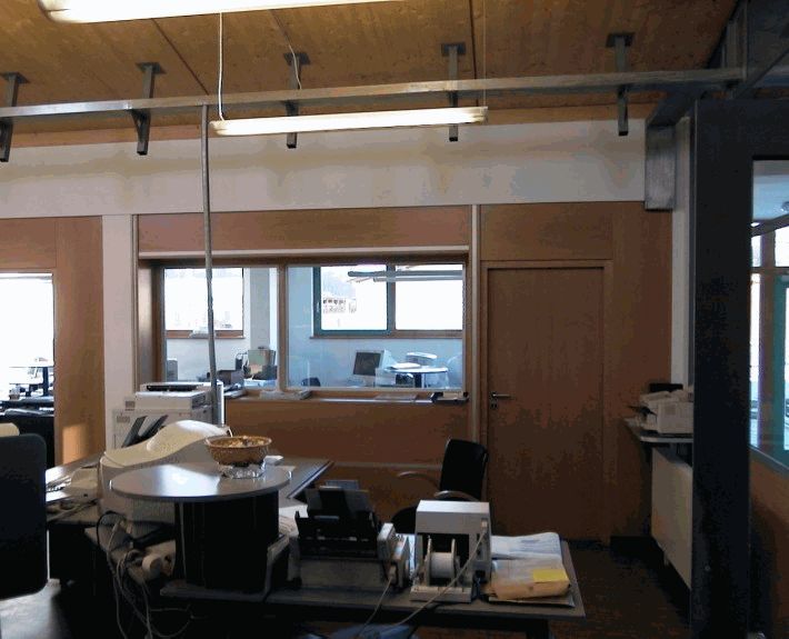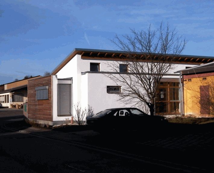 Neubau eines Bürogebäudes für eine Druckerei in Sulzbach-Rosenberg. Planung und Realisierung des kompletten Bauvorhabens inklusive des Entwurfs aller Möbel und der kompletten Inneneinrichtung.