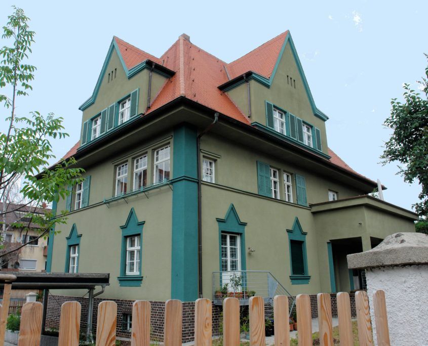 Die außergewöhnliche Architektur der altehrwürdigen „Grünen Villa“ wurde behutsam und mit Liebe zum Detail saniert und schafft damit Wohnräume mit hohen Gestaltungsansprüchen.