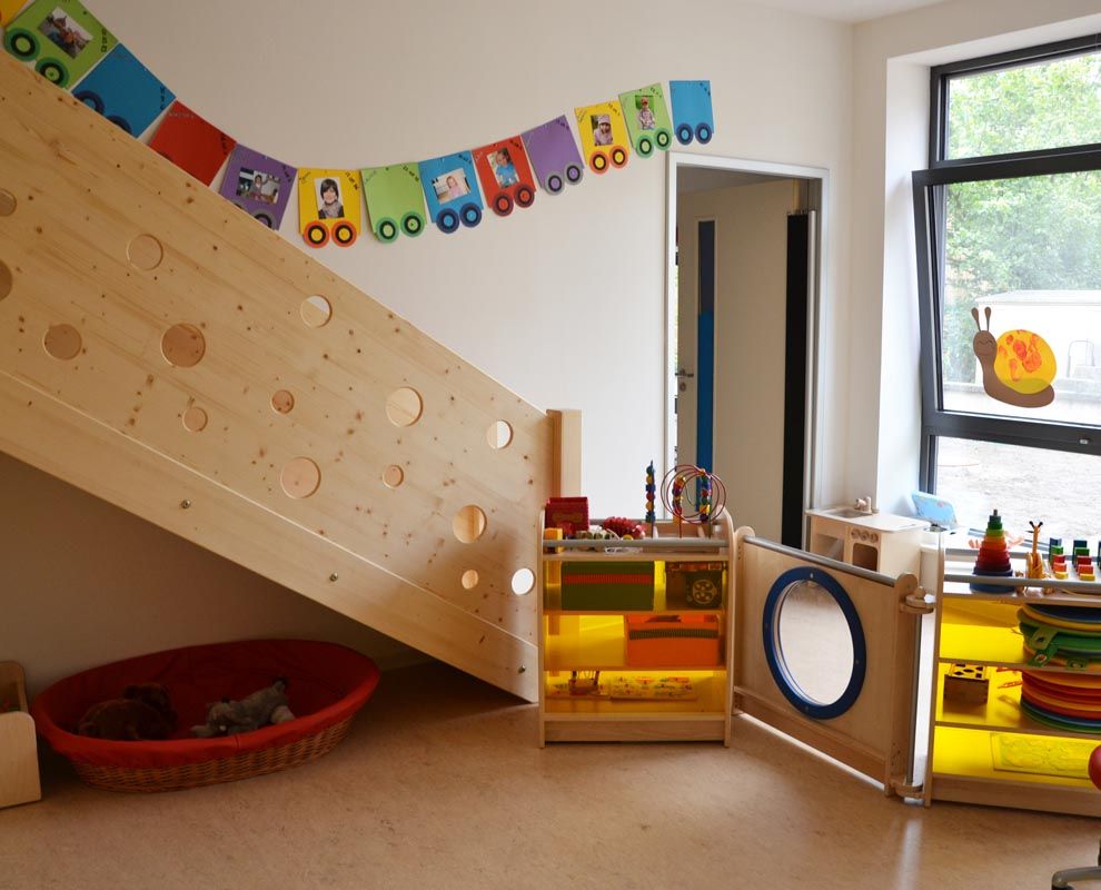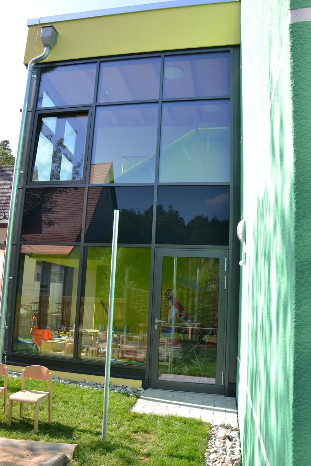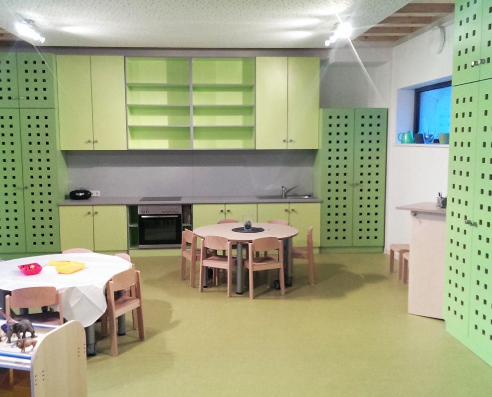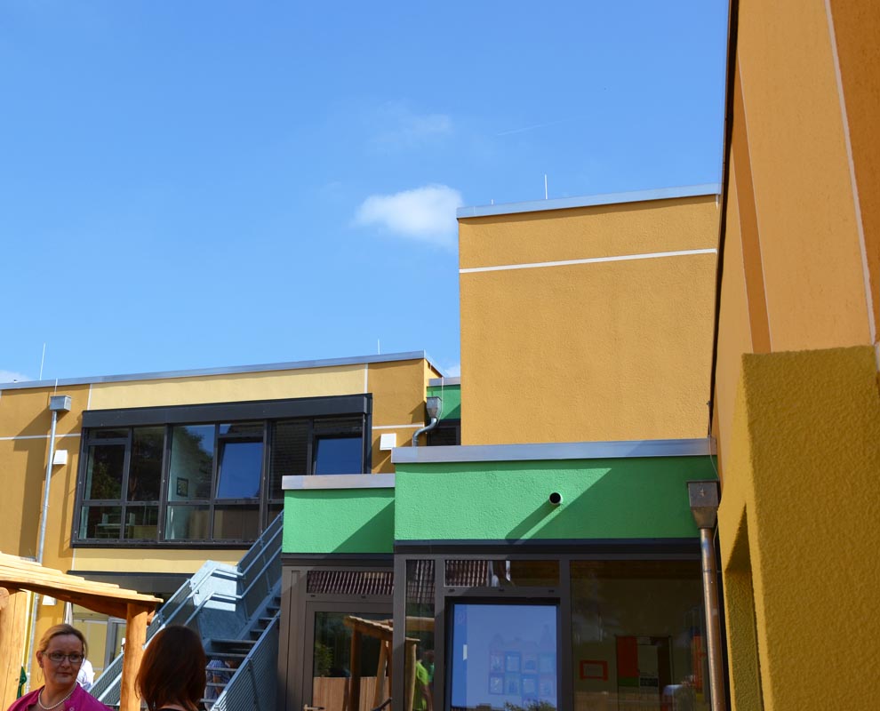 Die neuerbaute Kindertagesstätte bietet Platz für die Betreuung von 50 Kindern und Kleinkindern. Die farbenfrohe Raumgestaltung verschafft der selbsternannten „KITA Kunterbunt“ ein modernes Gesicht und erfreut Groß und Klein gleichermaßen.