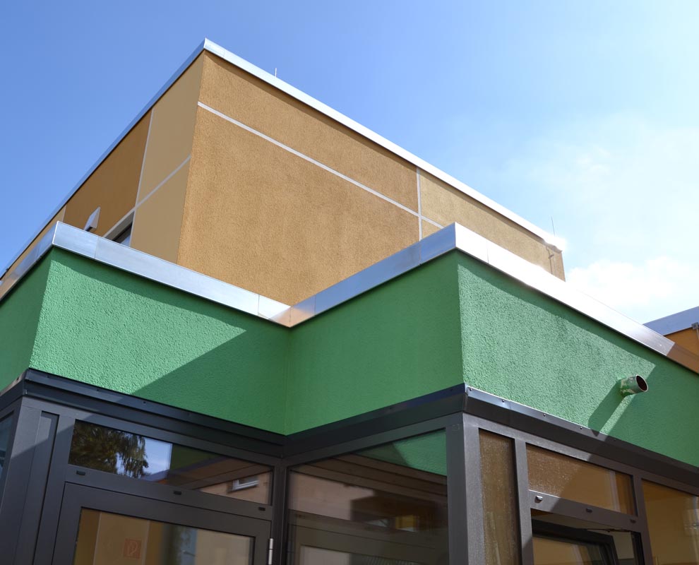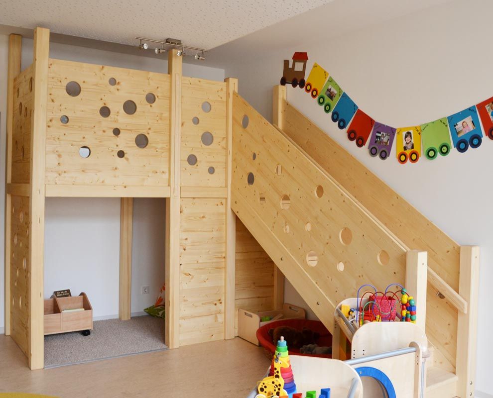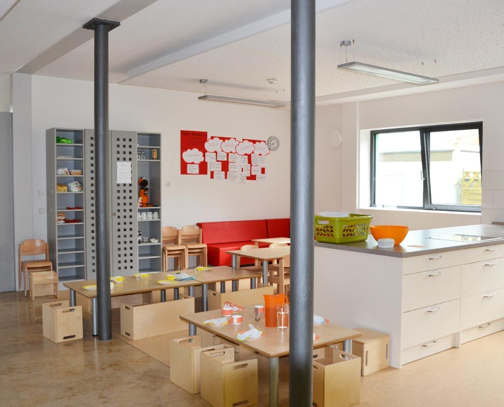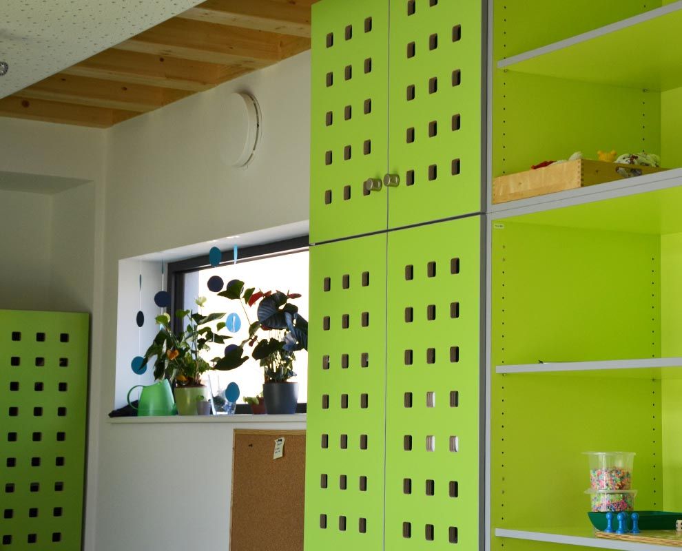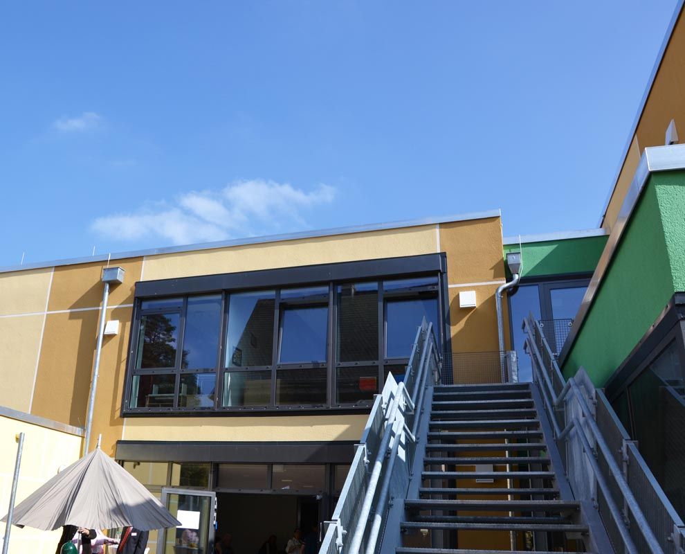 Die neuerbaute Kindertagesstätte bietet Platz für die Betreuung von 50 Kindern und Kleinkindern. Die farbenfrohe Raumgestaltung verschafft der selbsternannten „KITA Kunterbunt“ ein modernes Gesicht und erfreut Groß und Klein gleichermaßen.