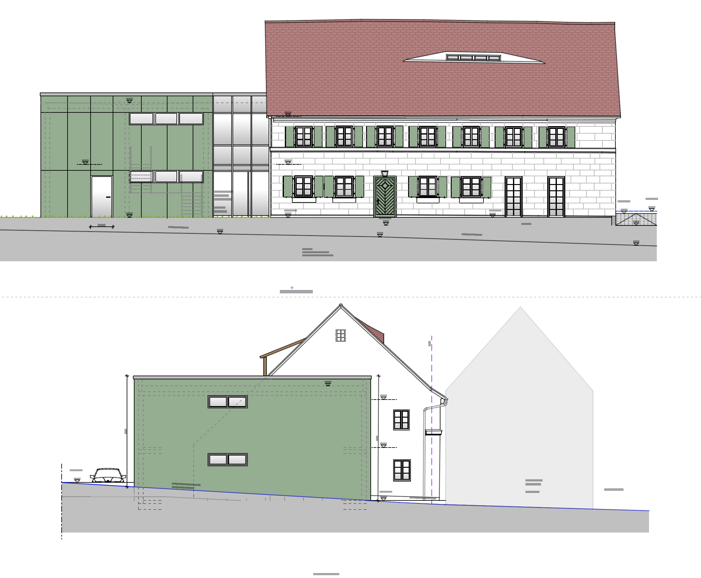 Nach einem VGV-Verfahren wurden wir beauftragt, das historische Gugelhaus zu sanieren und mit einem Erweiterungsbau einer neuen Nutzung als Bürgerhaus zuzuführen.