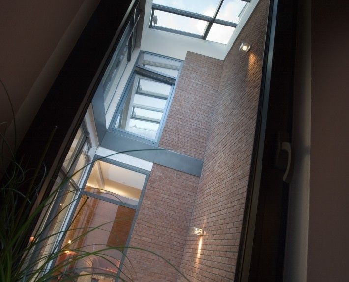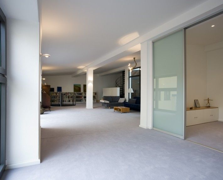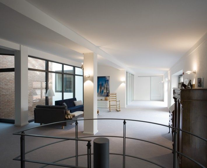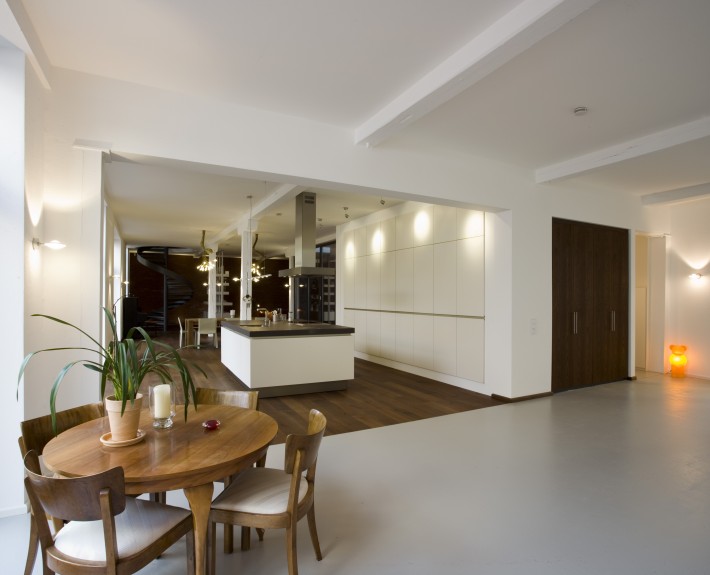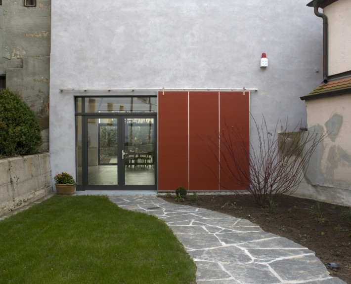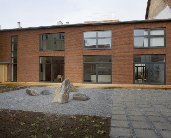 Revitalisierung und Sanierung einer ehemaligen Autowerkstatt zu einem Wohnhaus als Loft. Die Bestandsstruktur inmitten der Altstadt lässt nur eine einseitige Sonneneinstrahlung von Osten zu. Dementsprechend wurde ein Patio als Glaskubus ins Gebäudeinnere integriert, der Tageslicht auch in den inneren Bereich des Gebäudes bringt. Das Glasdach besteht aus mehreren Fensterflügeln, die per Elektronik maschinell bedienbar sind. Das innenliegende Bad wird über ein doppelflügliges Glasschiebeelement zum Patio und somit nach außen entlüftet. Das Badfenster ermöglicht den Blick nach außen und auf die Uhr der Turmspitze der Schwabacher Stadtkirche. Ein elektrisch bedienbares Oberlicht vor dem Saunabereich dient zur Entlüftung. Das Gebäude wird durch ein Gasbrennwertgerät beheizt. In beiden Stockwerken mit jeweils ca. 200 qm ist eine Fußbodenheizung eingebaut. Der Patio als unbeheizter Wintergarten ausgebildet führt im Sommer überschüssige Wärme ab.