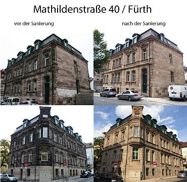 Im Herzen der Fürther Altstadt in der Mathildenstr. 40 soll für zwei Kindergartengruppen ein neues Zuhause entstehen. Der bereits 2016 fertiggestellte Kinderhort im Nachbarhaus soll in diesem Zuge mit dem Kindergarten verbunden werden, sodass sich das neue Spiel- und Lernareal der Kinder auf die Fläche beider Objekte erstreckt. Ein besonderes Highlight wird im Innenhof des Kindergartens entstehen. Das Dach des Innenhofes soll als Spielwiese umfunktioniert werden, auf welcher nach Lust und Laune gerutscht und geschaukelt werden kann.