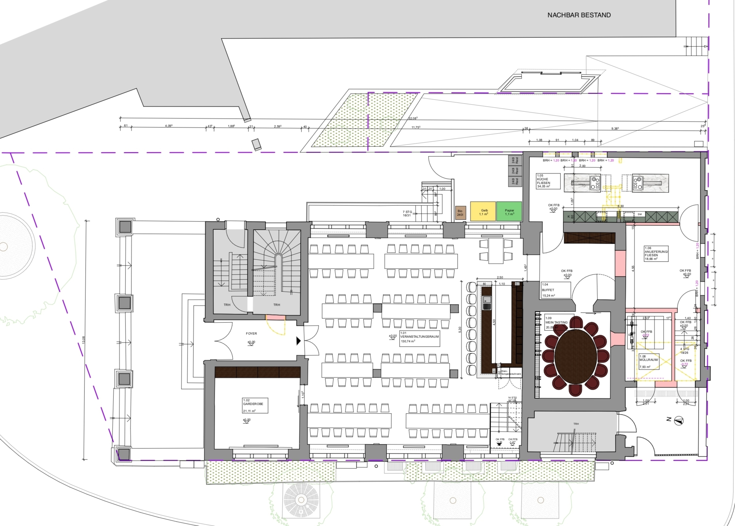 Sanierung der Dachgeschosswohnungen und Umnutzung des Erdgeschosses von Praxisräumen zu gastronomischer Nutzung.