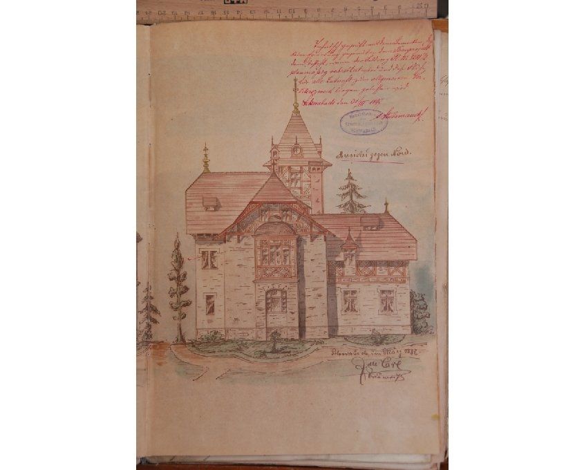 Die Carl´sche Dampfziegelei wurde bereits 1867 von Peter Zehrer errichtet. Sein Nachfolger Stefan Fölsner erweiterte sie um 1881 um ein Trockenhaus und weitere Gebäude. 1896 vergrößerte der neue Besitzer Johann Carl die Ziegelei und errichtete einen Kesselraum. Johann Carl war nicht nur Ziegelei Besitzer, sondern auch Baumeister. Er erbaute 1897 die Villa, ein zweigeschossiger Gruppenbau mit Fachwerkobergeschoss und –giebeln, Schopfwalmdach, Erkern und Turmanbau mit spitzem Zeltdach im Süden, in Formen der deutschen Renaissance.